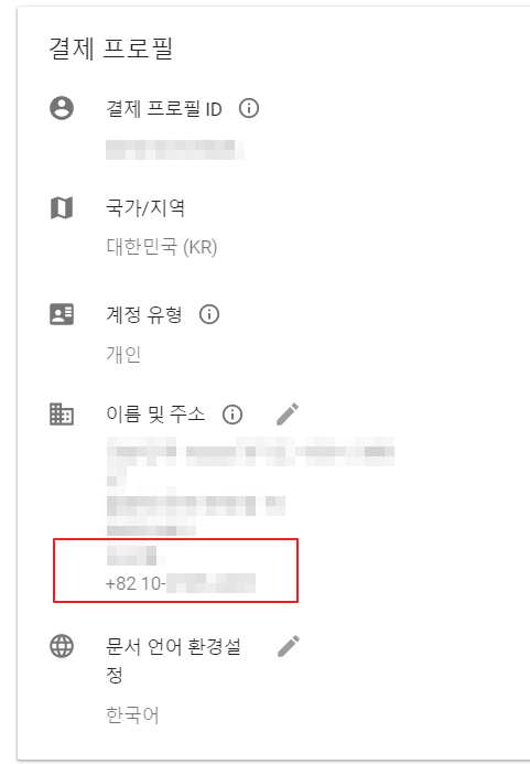 저 같은 경우는 전화번호 칸이 비어 있었습니다.